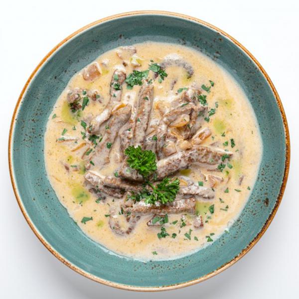 Состав: Говядина, лук, сметана, паста томатная, специи.