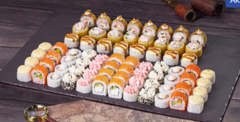 Состав: Ролл Филадельфия лайт (8 шт.), ролл Кракатау фреш (8 шт.), ролл Кентукки (8 шт.), ролл Калифорнийский краб (8 шт.), ролл Эрта але (8 шт.), ролл Эль пасо (8 шт.), ролл Египетская курица (8 шт.), ролл Итальянский ХОТ (8 шт.), ролл Курочка из Сакурасо (8 шт.) *Не забудьте заказать имбирь, васаби и соевый соус. Они не входят в стоимость заказа.