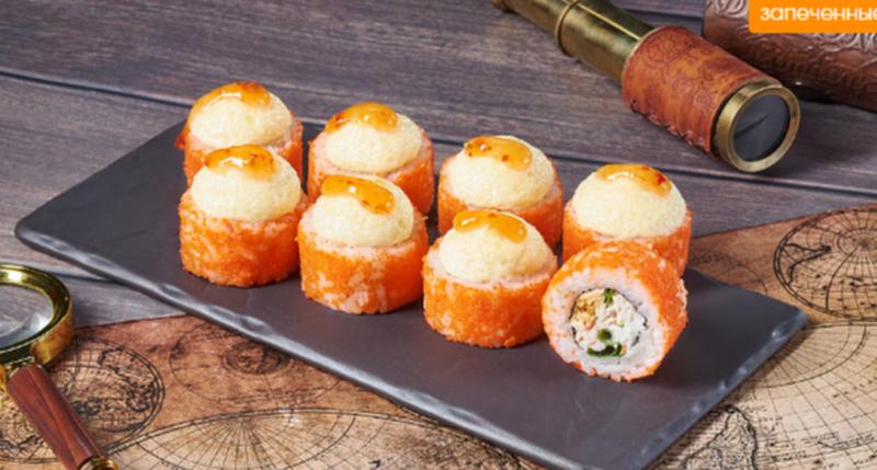 Состав: Лосось терияки, сливочный сыр, зеленый лук, крем краб соус, икра масаго оранжевая, монако соус, сладкий чили соус, рис, нори *Не забудьте заказать имбирь, васаби и соевый соус. Они не входят в стоимость заказа.
